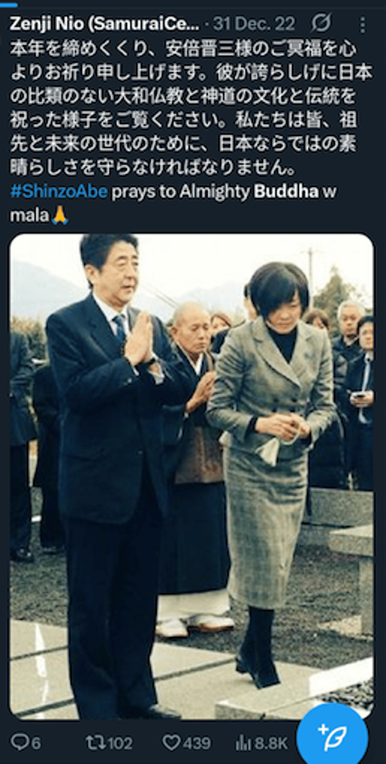 ZENJI NIO PAYS TRIBUTE TO SHINZO ABE & SANAE TAKAICHI